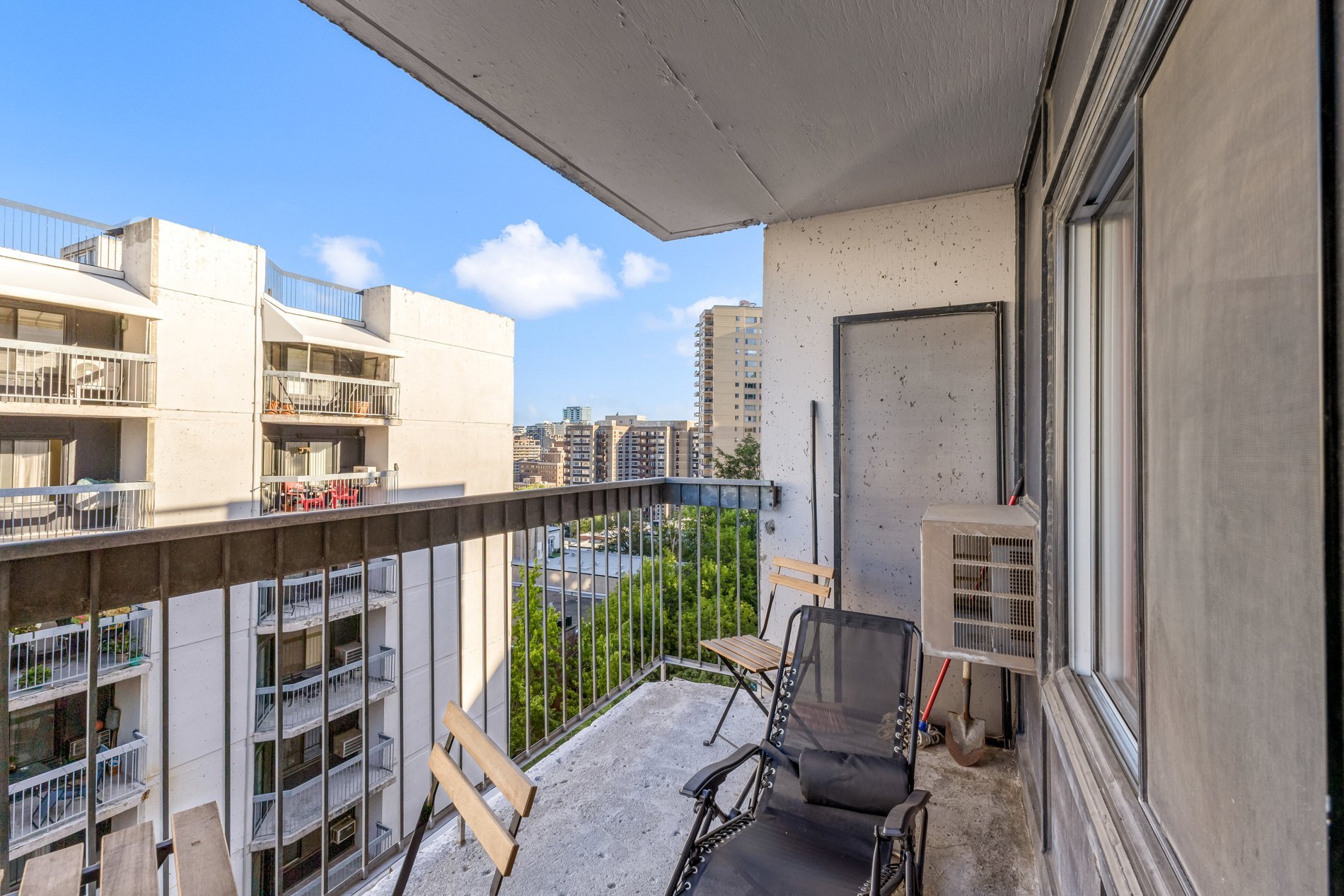 * Balcon avec vue dégagée sur le centre-ville